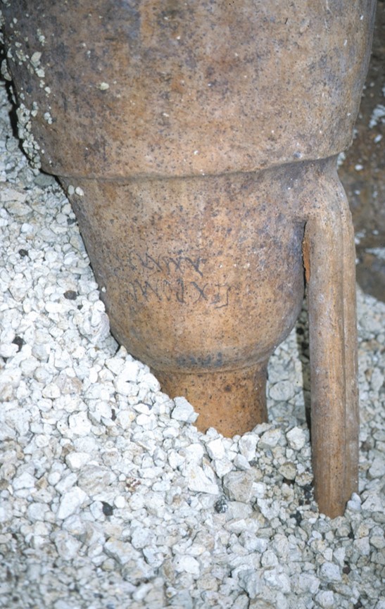 Some of the amphorae are labelled: Sextus Pompeius Amarantus. These have been crucial in making the claim not only that that a man named Amarantus was the owner of the Bar, but also that he was a freedman; ‘Amarantus’ is a non-Roman, slave name but here it is combined into the three part name format only granted to a Roman citizen.